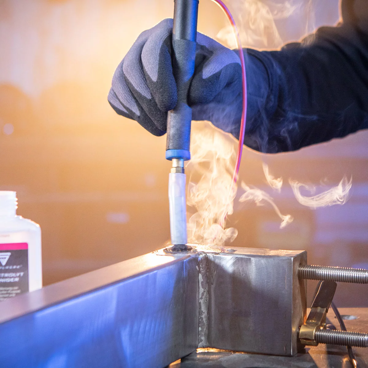 Čistilo z elektrolitom STAHLWERK omogoča čisto čiščenje zvarnih šivov brez ostankov. Čistilo lahko optimalno uporabljate tako z napravo za čiščenje zvarnih šivov STAHLWERK SRG-300 kot tudi z napravami drugih proizvajalcev. Čistilo z elektrolitom se uporablja za odstranjevanje modrega madeža z zvarnih šivov na nerjavnem jeklu in se nanese s čopičem iz ogljikovih vlaken pred obdelavo zvarnih šivov. Pri uporabi je pomembno zagotoviti, da raztopina vpliva na kovino. Čas izpostavljenosti je odvisen od vrste in resnosti kontaminacije. Postopek čiščenja skrajšamo z mehansko podporo čiščenju z gobo ali krtačo. Razrahljano umazanijo lahko po uporabi sperete z vodo ali popršite. Čistilo z elektrolitom navdušuje s svojimi visokimi pasivnimi lastnostmi. Pasivacijski sloj na kovinski površini se hitro obnovi in korozija je trajnostno preprečena.